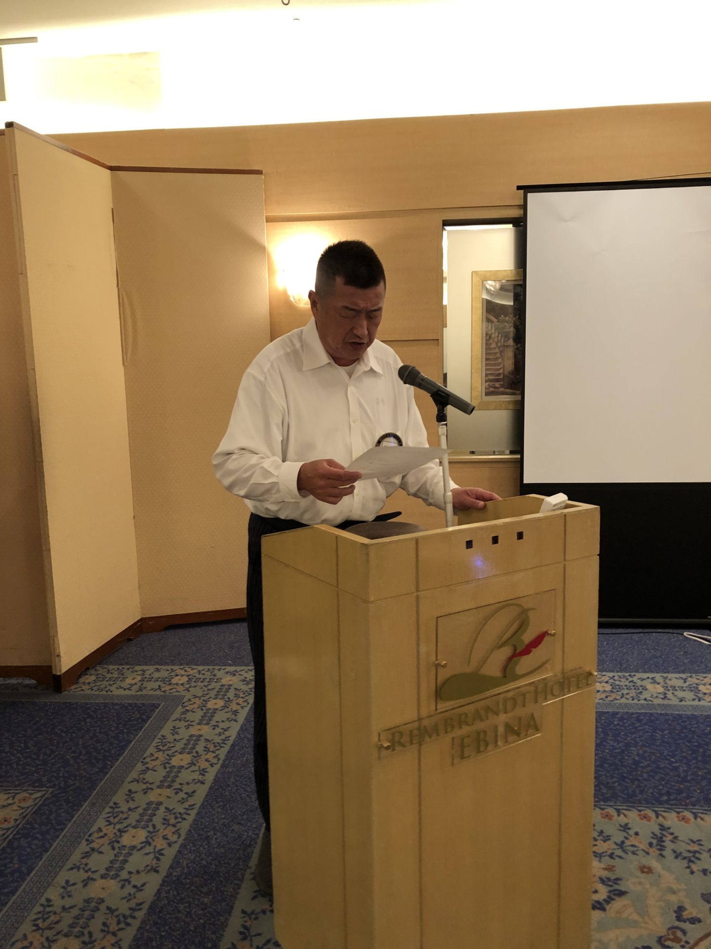 海老名ロータリークラブの皆様こんにちは。海老名欅ロータリークラブの下郡山です。本日は今年度のご挨拶に伺わせていただきました。いろいろありましてクラブ創設して初めて、2度目の会長です。後ほどご挨拶させていただきます。