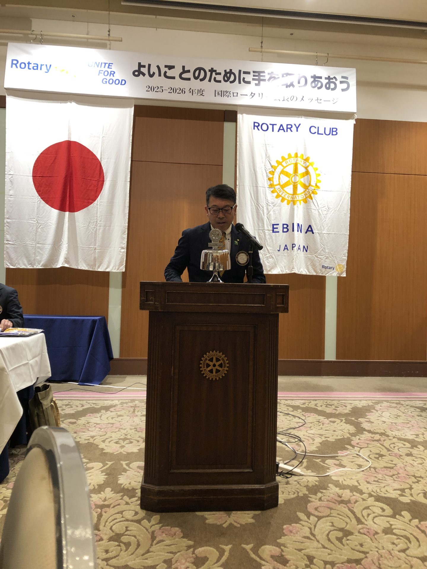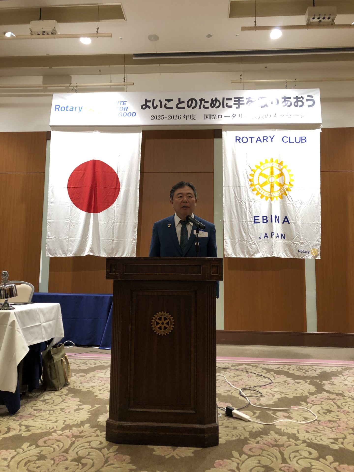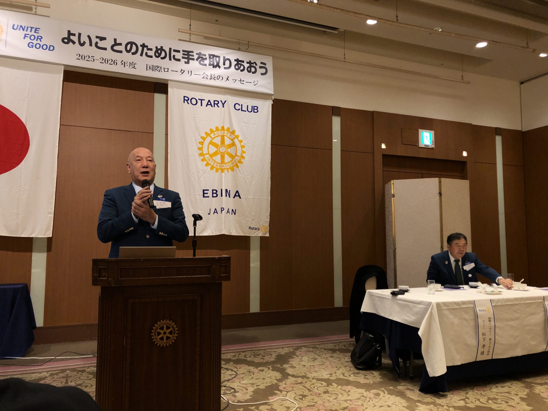 松下ガバナー、松本ガバナー補佐、本日は海老名ロータリークラブにお越しいただきありがとうございます。松下ガバナーの卓話を楽しみにしております。よろしくお願いいたします。